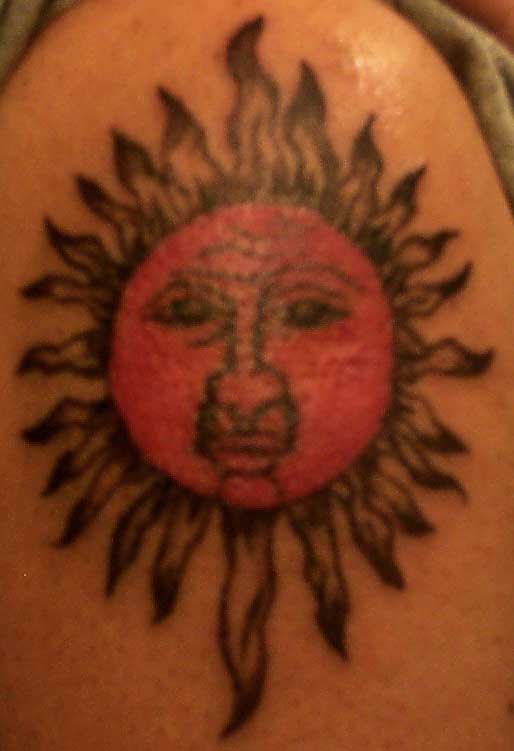 Another tattoo to add to my small collection of artwork a sun. This one is done on a friend of mine's husband (it was his Christmas present from her) Thanks you guys :)